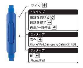• インラインマイクロフォン:iPhone、アンドロイド携帯(CTIA)に互換性があります